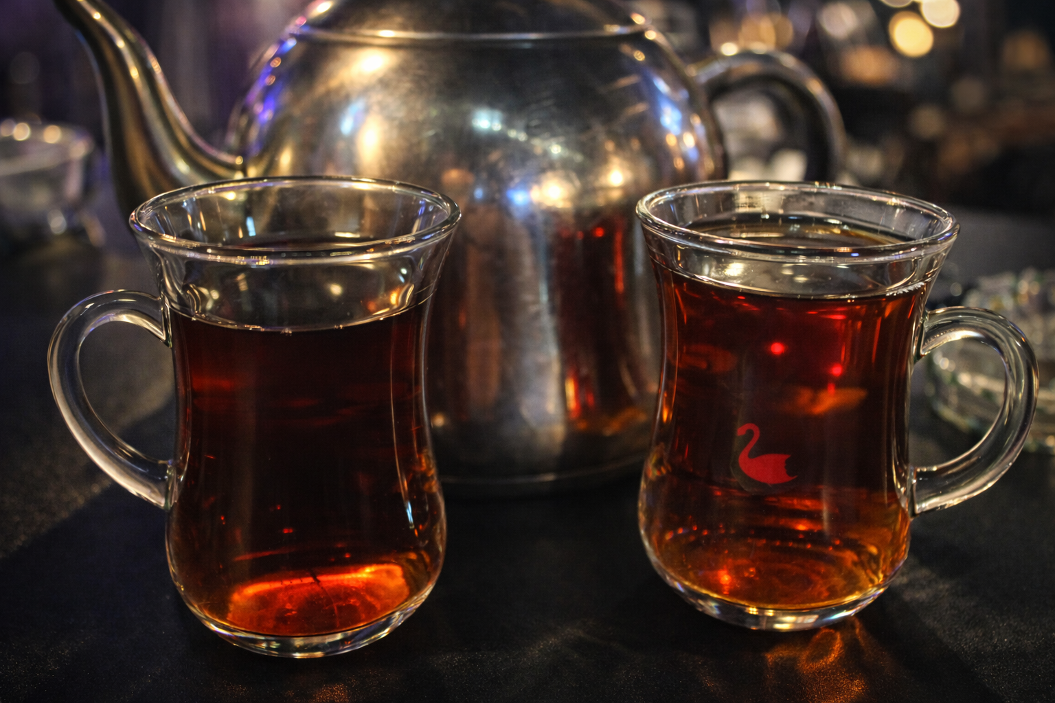 Arabic tea and traditional sweets, including kunafeh